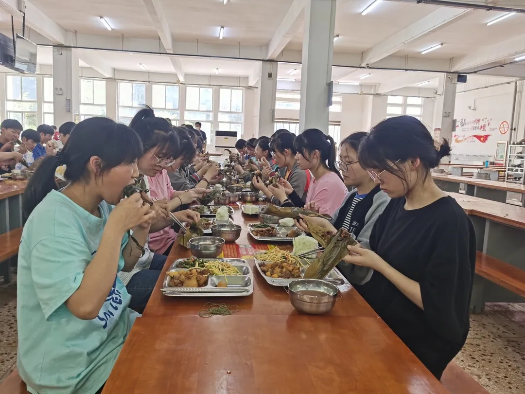 小小粽子,深深情誼。同學(xué)們接過(guò)粽子,滿懷感恩,臉上洋溢著喜悅的笑容。老師們還將粽子掛在教室門(mén)口,同學(xué)們離開(kāi)教室時(shí)輕快跳起,用頭頂粽子,寓意“一定高中”,中午就餐時(shí)間,熱氣騰騰的粽子讓同學(xué)們通過(guò)舌尖上的美味感知傳統(tǒng)文化魅力,在愉悅的氛圍中煥發(fā)昂揚(yáng)斗志,實(shí)踐青春誓言。