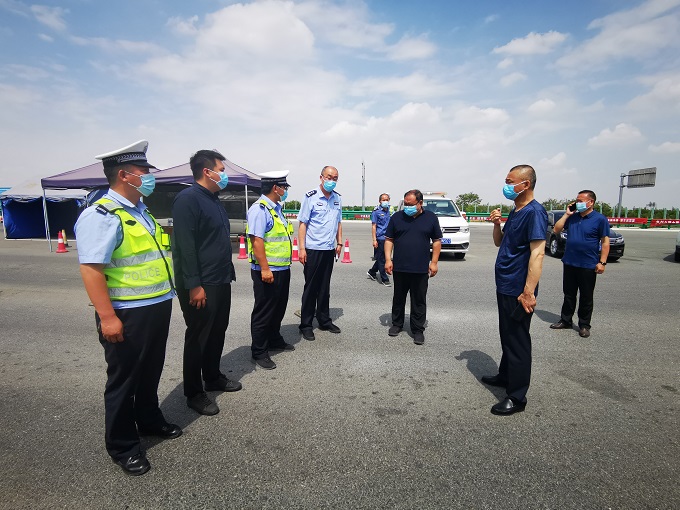 岳備戰(zhàn)一行先后到譚莊高速路口執(zhí)勤卡點(diǎn)、商南高速路口執(zhí)勤點(diǎn)看望慰問值班民輔警及防疫工作人員,并送上慰問品。在卡點(diǎn),岳備戰(zhàn)詳細(xì)檢查了各項防疫工作落實情況,為在一線的防疫人員送去節(jié)日祝福及慰問品,感謝他們用實際行動詮釋擔(dān)當(dāng)精神、奉獻(xiàn)精神,對大家頂著烈日堅守在防疫一線,為廣大百姓的生命安全保駕護(hù)航。同時他強(qiáng)調(diào)大家要時刻保持臨戰(zhàn)狀態(tài),以高度的責(zé)任感,堅定的信心和有力的舉措,站好崗、履好職,扎實做好疫情防控各項工作,全力守護(hù)百姓生命健康安全。