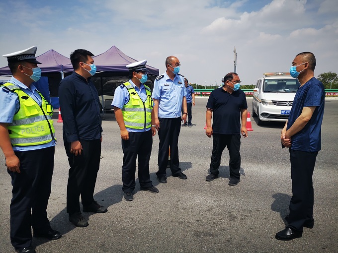 6月3日上午,商水縣副縣長、公安局長岳備戰(zhàn)一行慰問商水高速卡點(diǎn)執(zhí)勤防疫一線人員,感謝他們在節(jié)日期間的辛苦付出,并叮囑他們在做好防疫工作的同時,也要做好自我防護(hù),降溫防暑,確保個人安全。