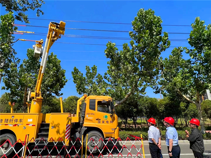 當(dāng)日下午,在中心城區(qū)武盛大道南段,國網(wǎng)周口供電公司工作人員嚴(yán)格按照標(biāo)準(zhǔn)化作業(yè)流程,穿戴絕緣服、絕緣安全帽、絕緣手套等防護(hù)安全工器具,在黃色絕緣斗臂車“長臂”的助力下于高空中有序進(jìn)行施工。