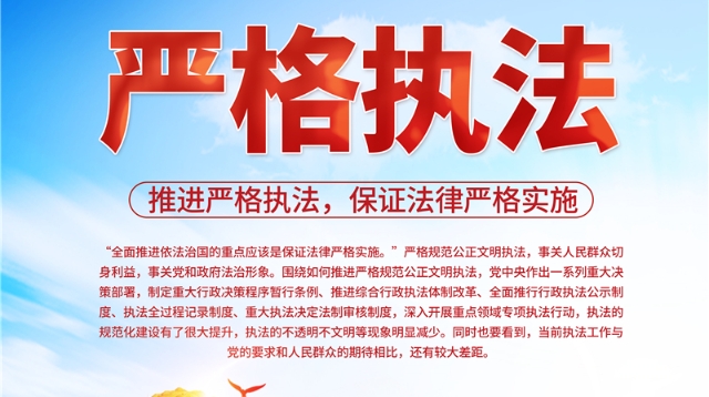 “全面依法治國的重點應該是保證法律嚴格實施。”嚴格規(guī)范公正文明執(zhí)法,事關人民群眾切身利益,事關黨和政府法治形象。