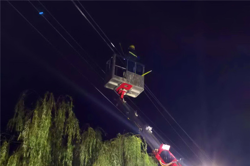 故障發(fā)生后,國(guó)網(wǎng)周口供電公司立即啟動(dòng)惡劣天氣應(yīng)急預(yù)案,并通過(guò)手機(jī)短信傳達(dá)到每位職工。雨勢(shì)稍微放緩后,各縣市供電公司迅速派出應(yīng)急搶修分隊(duì),出動(dòng)搶修人員1389人,搶修車輛303輛。在雨中,大家分工協(xié)作,爭(zhēng)分奪秒完成每一道工序,一部分搶修人員排查線路,消除安全隱患,防止次生災(zāi)害;一部分搶修人員快速投入到搶修工作中。