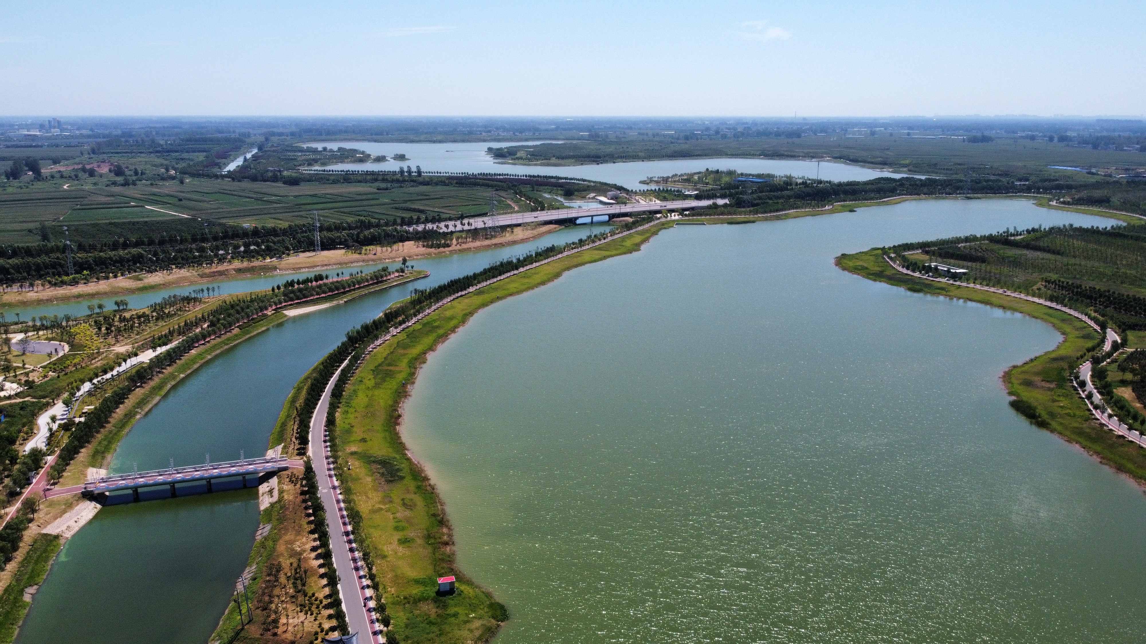 在周淮鐵路以東、大廣高速以西、流沙河以南、沙潁河以北,有一座集“灌溉調(diào)蓄、區(qū)域排澇、水質(zhì)保護(hù)、親水生態(tài)”于一體,融合“水安全、水環(huán)境、水文化、水經(jīng)濟(jì)”的綜合性基礎(chǔ)設(shè)施——永寧湖濕地公園。作為引黃調(diào)蓄項(xiàng)目,永寧湖濕地公園是中心城區(qū)十大民生工程之一,是周口市應(yīng)急備用水源地,主要功能為農(nóng)業(yè)灌溉調(diào)蓄,同時(shí)兼顧生態(tài)環(huán)境改善。永寧湖周邊同時(shí)規(guī)劃有一大批地標(biāo)性建筑,項(xiàng)目建成后,不僅能完善新區(qū)功能、提升城市形象,還能實(shí)現(xiàn)旅游產(chǎn)品與城市生活自然融會(huì)貫通,讓市民與游客共享濱水城市之美。①9 周口日?qǐng)?bào)·周道客戶(hù)端記者 劉俊濤 攝