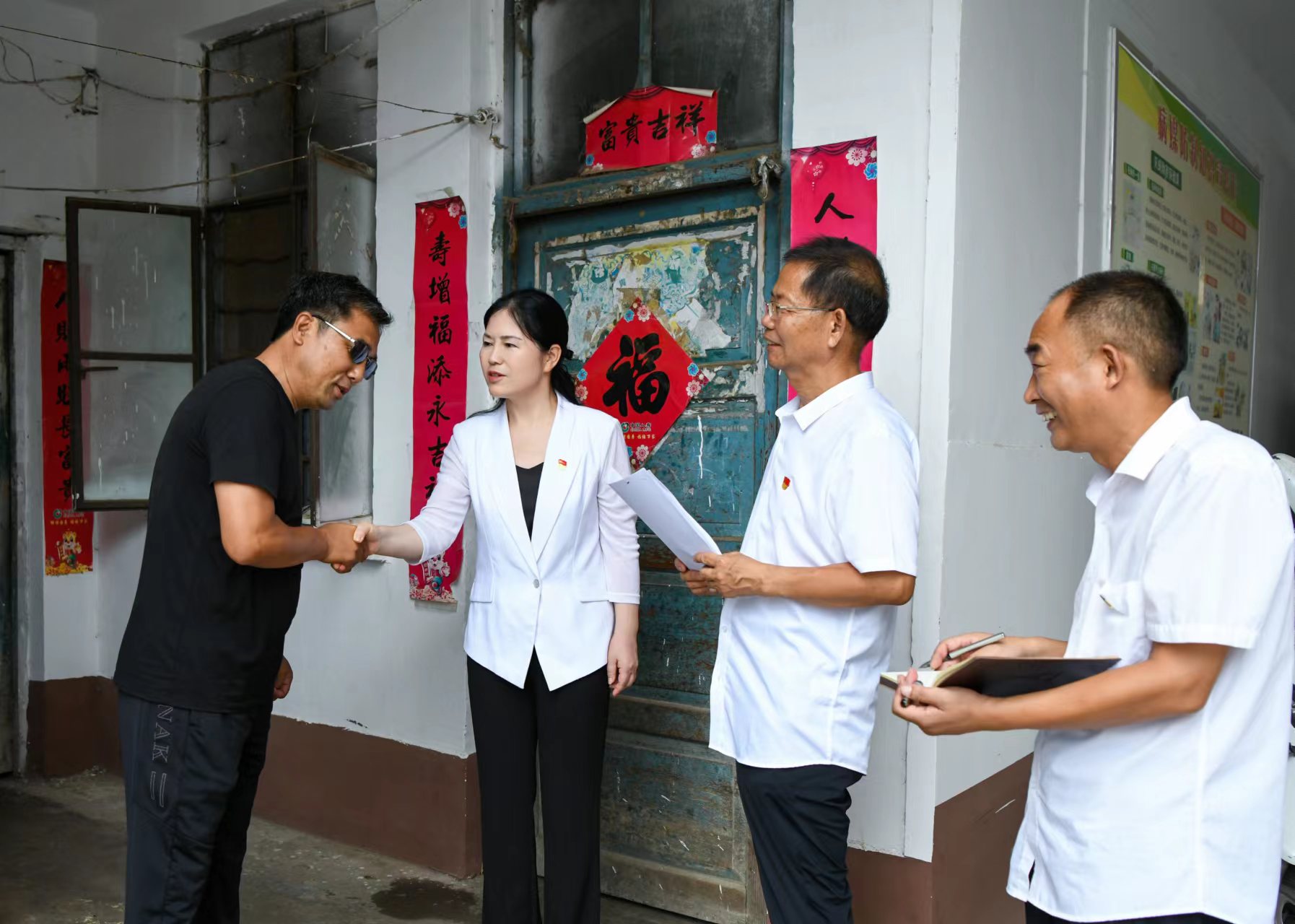 2022年1月30日,淮陽區(qū)一房地產(chǎn)項目因拖欠農(nóng)民工工資導(dǎo)致來自四川、湖北、河南信陽的300多名農(nóng)民工到區(qū)信訪局上訪。由于春節(jié)臨近,人員難找,問題遲遲得不到解決,農(nóng)民工情緒非常激動,揚言要圍堵區(qū)委、區(qū)政府。王瑞霞主動擔當,一邊與農(nóng)民工代表談心,一邊與相關(guān)部門溝通,召集住建、人社、公安等部門與開發(fā)商、建筑商召開協(xié)調(diào)會。經(jīng)過連續(xù)15個小時的交涉,問題得到妥善解決,成功將560余萬元工資以微信轉(zhuǎn)帳的形式發(fā)放到農(nóng)民工的賬戶。次日清晨,領(lǐng)到工資的農(nóng)民工把區(qū)信訪局接待中心打掃得干干凈凈,還貼上了春聯(lián)。幾個農(nóng)民工眼里含著熱淚說:“王局長連夜為我們要回了工資,我們終于能回家過年了,買錦旗來不及,我們只有通過這種方式來表達謝意!”