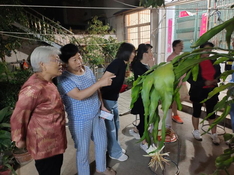 清輝滿天,花香盈院。9月20日晚,苗天才、侯秀蘭夫婦家的曇花開了,潔白的花瓣,馥郁的花香,引來親朋、鄰居絡(luò)繹趕來,賞花合影,小院充滿歡樂祥和的氣息。