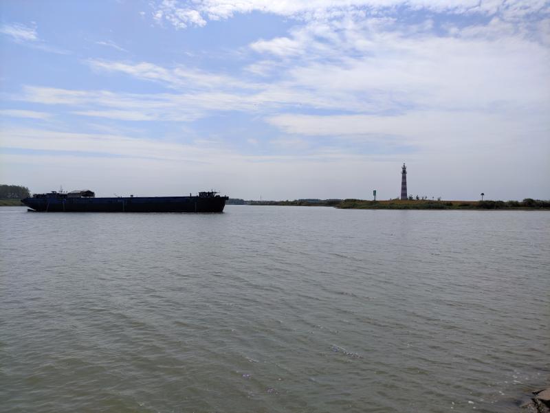 9月21日19時(shí)許,豫貨出海、“周”向世界——周口六條貨運(yùn)集裝箱航線大型異地采訪活動(dòng)采訪組一行在堤岸下的農(nóng)田中穿行,終于到達(dá)沫河口。昏暗的夜色下,采訪組成員望著寬闊的河道,隱隱如山的貨輪伴著引擎的轟鳴聲緩緩駛過(guò),僅有的點(diǎn)點(diǎn)燈光來(lái)自對(duì)岸海事部門的檢查站。沫河口岸邊,一些房屋久棄不用,黑洞洞的窗口像一張張大嘴,仿佛在訴說(shuō)著村莊久遠(yuǎn)的歷史。