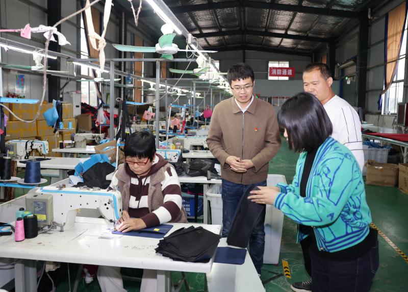 同樣在村頭撈到金的還有返鄉(xiāng)創(chuàng)業(yè)者趙國(guó)興。趙國(guó)興早年在南方某箱包廠打工并成為經(jīng)理。在沿海城市產(chǎn)業(yè)轉(zhuǎn)移的大潮下,趙國(guó)興收到了家鄉(xiāng)的呼喚,毅然帶著妻子返鄉(xiāng),租賃村里的扶貧車間辦起了眾誠(chéng)箱包有限公司。
