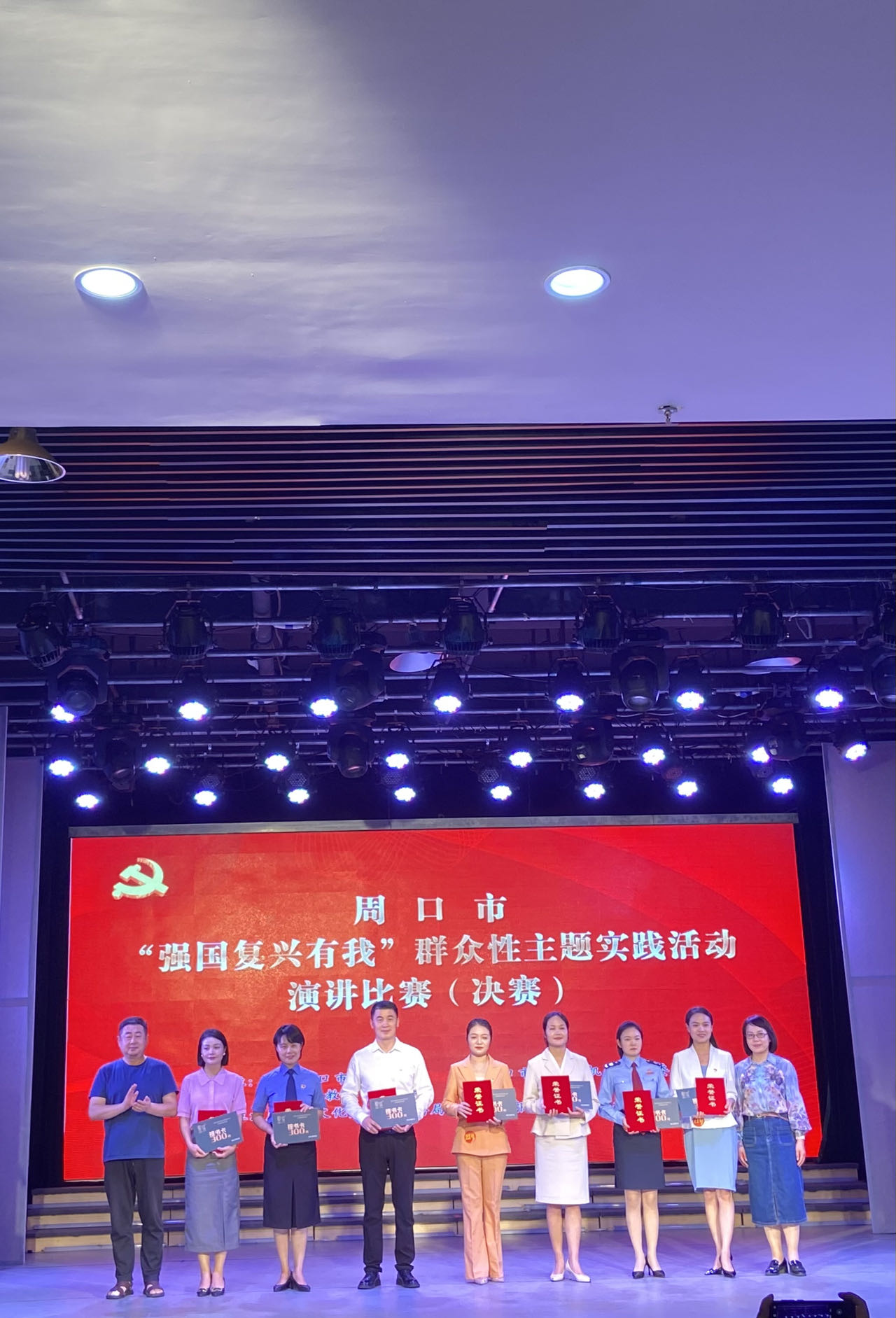 決賽過(guò)程中,選手立足中國(guó)式現(xiàn)代化全面推進(jìn)中華民族偉大復(fù)興的廣闊征程, 以各自學(xué)習(xí)、工作、生活為視角,以微故事、微黨課、微講述為主要方式,用飽滿(mǎn)的熱情講述了學(xué)習(xí)宣傳貫徹黨的二十大精神的個(gè)人感悟、具體實(shí)踐;講述了錨定“兩個(gè)確?!?,實(shí)施 “ 十大戰(zhàn)略”,推進(jìn)中國(guó)式現(xiàn)代化周口實(shí)踐的實(shí)際行動(dòng);講述了繁榮發(fā)展文化事業(yè),深入實(shí)施文旅文創(chuàng)融合戰(zhàn)略周口實(shí)踐之“我”的認(rèn)識(shí)。選手們情感充沛、慷慨激昂,“強(qiáng)國(guó)有我 請(qǐng)黨放心”的口號(hào)鏗鏘有力,響徹劇場(chǎng),展示了一代周口青年奮力譜寫(xiě)中國(guó)式現(xiàn)代化周口絢麗篇章的信心和決心。
