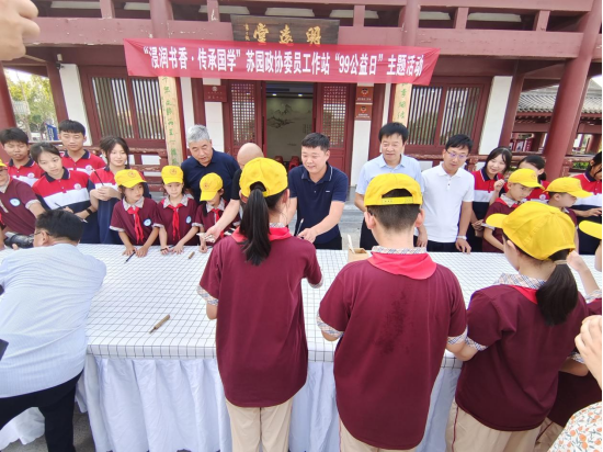 本次活動(dòng),特邀劉氏毛筆制作技藝第六十七代傳承人劉永杰現(xiàn)場(chǎng)講解和演繹毛筆的制作過程,40多名中小學(xué)生親身體驗(yàn),親手制作,更深一步了解毛筆的制作工序,讓毛筆制作技藝不斷發(fā)揚(yáng)光大,讓非遺文化不斷的傳承下去,激勵(lì)學(xué)生們寫好中國字,做好中國人。委員們和學(xué)子們?cè)诜沁z傳承人的指導(dǎo)下,共同制作“蘇園狀元筆”。