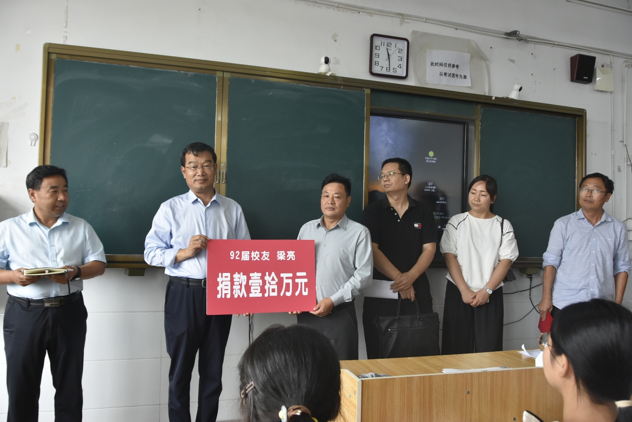 梁亮在發(fā)言中回憶了自己在母校求學時的點點滴滴,他感恩母校老師當年的辛勤培養(yǎng),解釋了捐贈的初衷,并莊嚴承諾:只要自己的企業(yè)不倒閉,就會把這項公益事業(yè)一直做下去。他希望“大梁班”全體同學聽老師的話,做規(guī)范的事。不怕苦,不怕累,找對學習方法,合理分配時間,想法設法提高學習效率,抵制一切不良誘惑,一心用在學習上。他祝愿全體同學都能考入自己理想的大學,一定會實現(xiàn)自己的夢想!