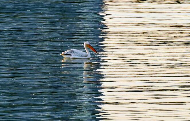 淮陽市民胡海軍說,9月18日,他走到弦歌湖湖邊,看到湖中間有個大鳥,像天鵝,嘴長,脖子長?;搓枖z影愛好者徐修印說,他是在弦歌湖拍照時發(fā)現(xiàn)鵜鶘的。當時,好多人拿著手機拍照,大家對這個鳥非常好奇,因為這個鳥在龍湖很少見到。