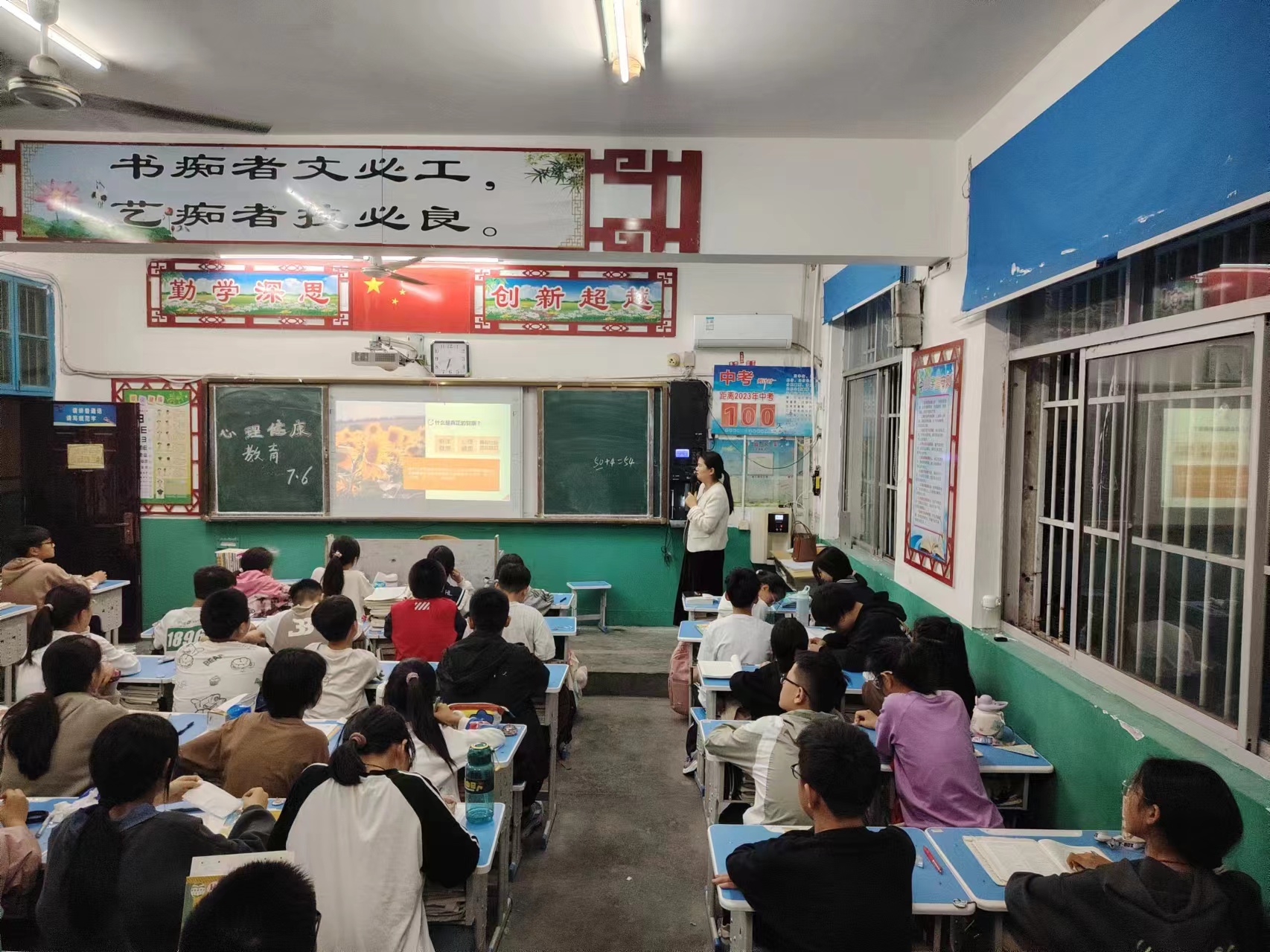 學校政教處提前制作好課件,各班班主任充分利用第一節(jié)晚自習,從“什么是心理健康”“中小學生心理健康的標準”“增進心理健康的途徑”三個方面進行認真講解,引導學生合理調節(jié)自己的心理,啟示學生日常生活中不僅需要有健康的體魄,而且更需要有健康的心靈,并正確認識自我、接納自我,享受美好人生。特別在講到“增進心理健康途徑”這一環(huán)節(jié)時,學生積極發(fā)言,師生頻繁互動,最終讓學生們明白對于同一件事情,個人想法不同帶來的情緒也不相同,要保持樂觀的生活態(tài)度,即使遭遇到挫折、失敗,依然能夠保持積極向上的情緒。