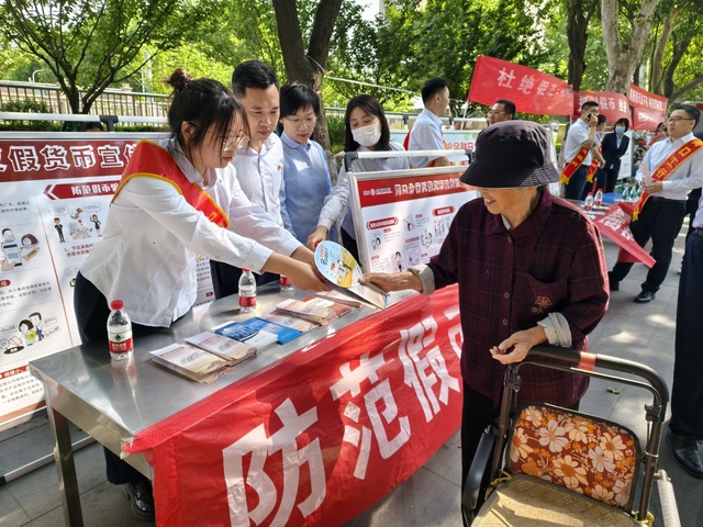 活動當天,該行組織員工前往五一廣場開展集中宣傳,通過設(shè)置宣傳咨詢臺,懸掛橫幅,向群眾發(fā)放反假幣、愛護人民幣和打擊假幣犯罪宣傳折頁,普及數(shù)字人民幣知識,宣傳人民幣防偽知識和識別假幣騙局,傳遞“防范假幣,保護自我”理念。針對老年客戶風險意識和識假能力不足問題,該行開展“一對一,手把手”現(xiàn)場教授假幣“看、摸、聽、測”等識別方法,切實守牢老年客戶的“錢袋子”。