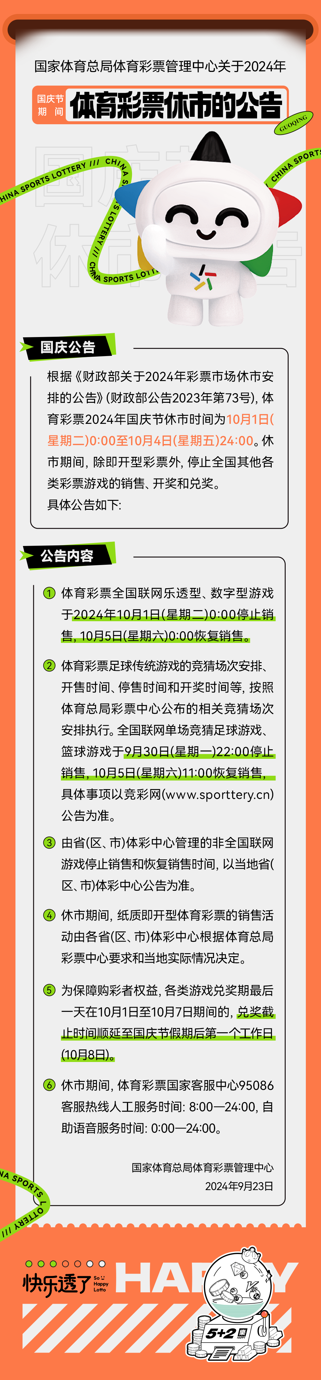 關(guān)于2024年國(guó)慶期間體育彩票休市公告