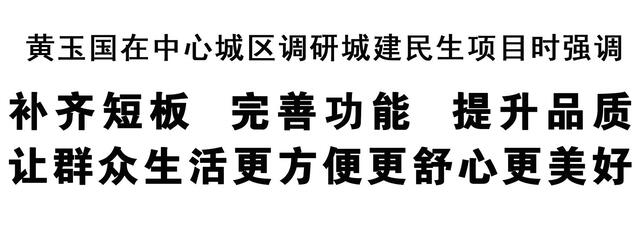 調(diào)研中,黃玉國強調(diào),城建民生項目是推動城市高質(zhì)量發(fā)展、創(chuàng)造高品質(zhì)生活的重要抓手。要深刻把握“五個轉(zhuǎn)變、五個更加注重”重要原則,順應城市發(fā)展規(guī)律,尊重人民群眾意愿,堅持系統(tǒng)謀劃,聚焦民生關切,著力補齊城市基礎設施、公共服務等領域短板弱項;堅持創(chuàng)新思路,積極主動作為,著力破解制約項目建設的堵點難點;堅持量力而行,分清輕重緩急,務實高效推進項目建設,確保干一件成一件,不斷增強人民群眾獲得感、幸福感和安全感。