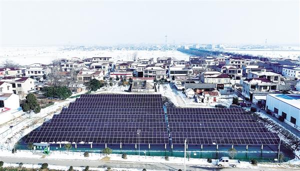 雪后的鄲城縣汲冢鎮(zhèn)謝寨村,連片的光伏板在暖陽(yáng)下熠熠生輝。