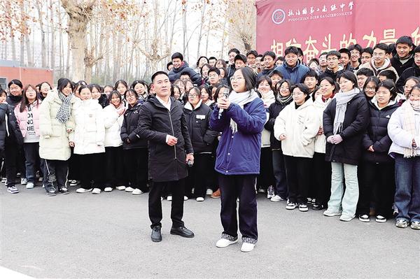 12月20日,黨的二十大代表、全國(guó)最美教師劉秀祥(前左)到扶溝縣第二高級(jí)中學(xué)開展“弘揚(yáng)踐行教育家精神”“傳承紅色基因、學(xué)思踐悟中國(guó)共產(chǎn)黨人精神譜系”活動(dòng),結(jié)合自己的成長(zhǎng)經(jīng)歷,引導(dǎo)學(xué)生立報(bào)國(guó)強(qiáng)國(guó)大志向、做挺膺擔(dān)當(dāng)奮斗者。