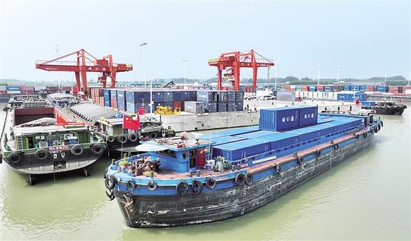 沙潁河畔,秋意正濃。一艘艘滿載貨物的船舶踏浪而行,駛向周口港范營作業(yè)區(qū)。碼頭上,龍門吊高聳入云,運(yùn)輸車輛川流不息,工人們忙碌作業(yè),呈現(xiàn)出一派欣欣向榮的景象。