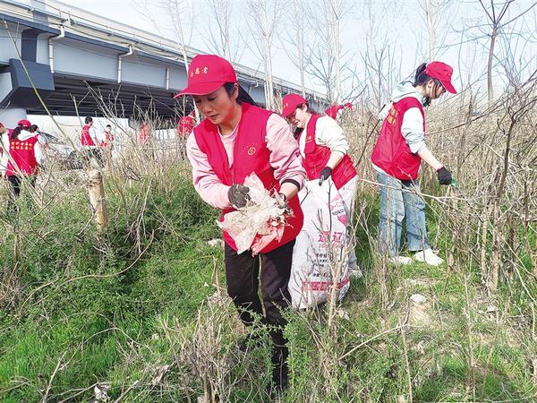 3月22日,志愿者在沙潁河畔撿拾垃圾。當(dāng)日,67名來自周口市環(huán)境保護(hù)協(xié)會(huì)、周口師范學(xué)院、周口恒大中學(xué)的環(huán)保志愿者,在中心城區(qū)沙潁河畔開展“世界水日、中國(guó)水周,護(hù)河凈灘在行動(dòng)”活動(dòng),以實(shí)際行動(dòng)踐行“綠水青山就是金山銀山”理念。