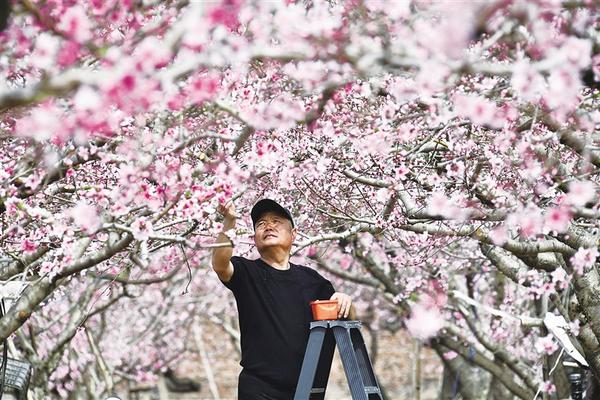 3月23日上午,工作人員為桃花授粉。近日,川匯區(qū)園藝中心的200多畝桃花競(jìng)相開放,宛如世外桃源。隨著天氣逐漸轉(zhuǎn)暖,桃花、油菜花持續(xù)盛開,周口進(jìn)入“賞花模式”。