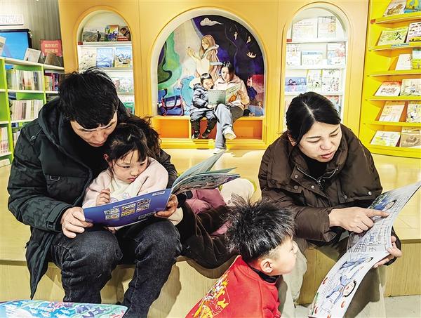 昨日, 市民帶著孩子在市新華書店內(nèi)讀書。孩子們或聚精會(huì)神地看書,或認(rèn)真聽家長(zhǎng)講故事,在書香的陪伴下度過了有意義的一天。