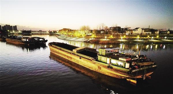 1月15日晚上,在中心城區(qū)三川交匯處,幾艘貨船停泊在沙潁河上。夜色、波光、船影和附近的大渡口、菩提門、周口大閘構(gòu)成美侖美奐的風(fēng)景。