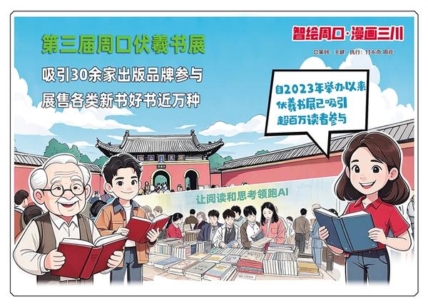 龍湖碧波映羲陵,時(shí)代書香沁古城。近日,第三屆周口伏羲書展從淮陽移師周口中心城區(qū),繼續(xù)開展專場(chǎng)展銷活動(dòng)。本屆書展以“讓閱讀和思考領(lǐng)跑AI”為主題,聚焦“閱讀價(jià)值升維”,重點(diǎn)展售經(jīng)典人文、認(rèn)知提升、深度思考類圖書。