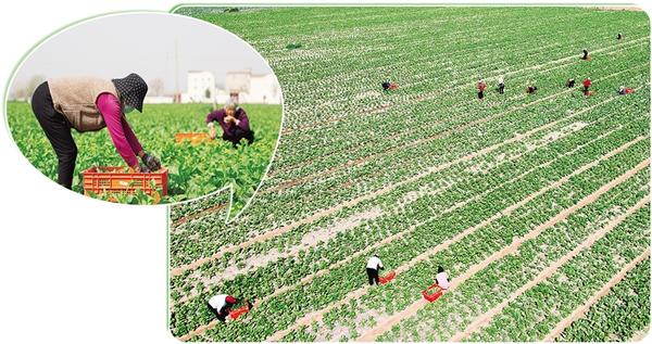 近年來,我市積極推廣“合作社+農(nóng)戶”“家庭農(nóng)場(chǎng)+農(nóng)戶”經(jīng)營模式,鼓勵(lì)農(nóng)民通過土地流轉(zhuǎn)將分散耕地整合起來,實(shí)現(xiàn)集中化、規(guī)模化經(jīng)營,全力提高土地利用效率,為鄉(xiāng)村振興注入強(qiáng)勁動(dòng)力。圖為4月11日,在淮陽區(qū)王店街道范莊行政村的農(nóng)田里,村民正采收蔬菜。