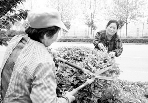 昨日,興旺路上兩名花工正在修剪道路隔離帶內(nèi)的花木。春暖花開正是修葺花木的最佳時(shí)機(jī),市園林部門組織人員對市區(qū)綠化植物進(jìn)行適時(shí)修整,確保環(huán)境整潔有序。                                                                  (記者  沈湛 攝)