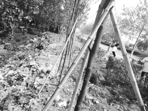 上圖 負(fù)責(zé)清掃周口大道段的環(huán)衛(wèi)工把垃圾倒在周口大道路邊的河溝中(幼兒師范學(xué)校北側(cè)100米路西),而距此不遠(yuǎn)的嵩山路口(周師北墻外)就有一個(gè)垃圾中轉(zhuǎn)站。