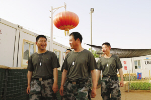 中國(guó)維和部隊(duì)首次配備單兵“身份識(shí)別牌”    5月26日,在馬里加奧維和任務(wù)區(qū),佩戴著“身份識(shí)別牌”的中國(guó)維和部隊(duì)成員值勤歸來(lái)。與以往不同的是,新一批維和官兵胸前,都佩戴著一個(gè)用中、英、法三種文字標(biāo)記姓名、血型、籍貫和編號(hào)信息的“身份識(shí)別牌”。這是中國(guó)維和部隊(duì)根據(jù)執(zhí)行維和任務(wù)需求,首次為官兵配備單兵“身份識(shí)別牌”。 新華社發(fā)