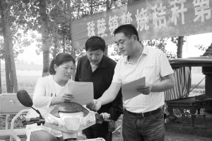 項城市秣陵鎮(zhèn)積極做好夏季秸稈禁燒工作,實行班子成員包片、機(jī)關(guān)干部包村、村組干部包戶責(zé)任制,全力構(gòu)筑了秸稈禁燒“防火墻”。圖為6月8日該鎮(zhèn)干部在李閣村向過往群眾發(fā)放禁燒宣傳單。(張永久 攝)