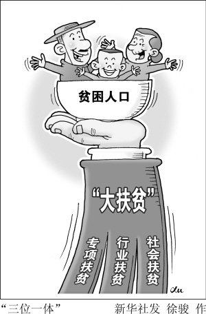 “扶貧開發(fā)是全黨全社會(huì)的共同責(zé)任,要?jiǎng)訂T和凝聚全社會(huì)力量廣泛參與。要堅(jiān)持專項(xiàng)扶貧、行業(yè)扶貧、社會(huì)扶貧等多方力量、多種舉措有機(jī)結(jié)合和互為支撐的‘三位一體’大扶貧格局。”習(xí)近平總書記強(qiáng)調(diào)。 新華社發(fā)