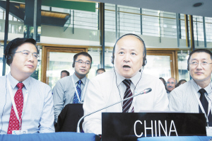 中國土司遺址入選世界遺產(chǎn)名錄 7月4日,在德國波恩舉行的第39屆聯(lián)合國教科文組織世界遺產(chǎn)委員會(huì)會(huì)議(世界遺產(chǎn)大會(huì))上,中國國家文物局副局長童明康(前中)代表中國政府發(fā)言。中國土司遺址4日在第39屆聯(lián)合國教科文組織世界遺產(chǎn)委員會(huì)會(huì)議(世界遺產(chǎn)大會(huì))上獲準(zhǔn)列入世界遺產(chǎn)名錄,成為中國第48處世界遺產(chǎn)。新華社發(fā)