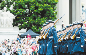 美國(guó)華盛頓舉行獨(dú)立日大游行      7月4日,軍人在美國(guó)首都華盛頓的憲法大道上參加游行。當(dāng)日,華盛頓舉行各種活動(dòng),慶祝美國(guó)第239個(gè)獨(dú)立日。新華社發(fā)
