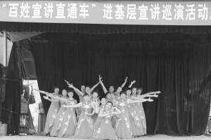 近日,扶溝縣“百姓宣講直通車”進基層宣講巡演活動巡回各鄉(xiāng)鎮(zhèn)行政村進行宣講,受到群眾的熱烈歡迎和稱贊。圖為“百姓宣講直通車”在該縣韭園鎮(zhèn)演出。(黃金峰 潘曉康 攝)
