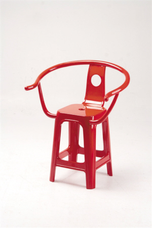 臺灣的夜市和大排檔往往讓許多去臺灣旅行的人流連忘返,大排檔里許多簡易的塑料凳子也讓人印象深刻,如果將這款凳子和圈椅結(jié)合起來會是什么樣子呢?設(shè)計師吳孝儒的這款圈凳,將幾千年前的圈椅和如今的速食文化融合,從材質(zhì)、線條設(shè)計融入了中西方跨越文化,讓人似乎有一邊看著古裝劇一邊吃著大排檔的感覺。